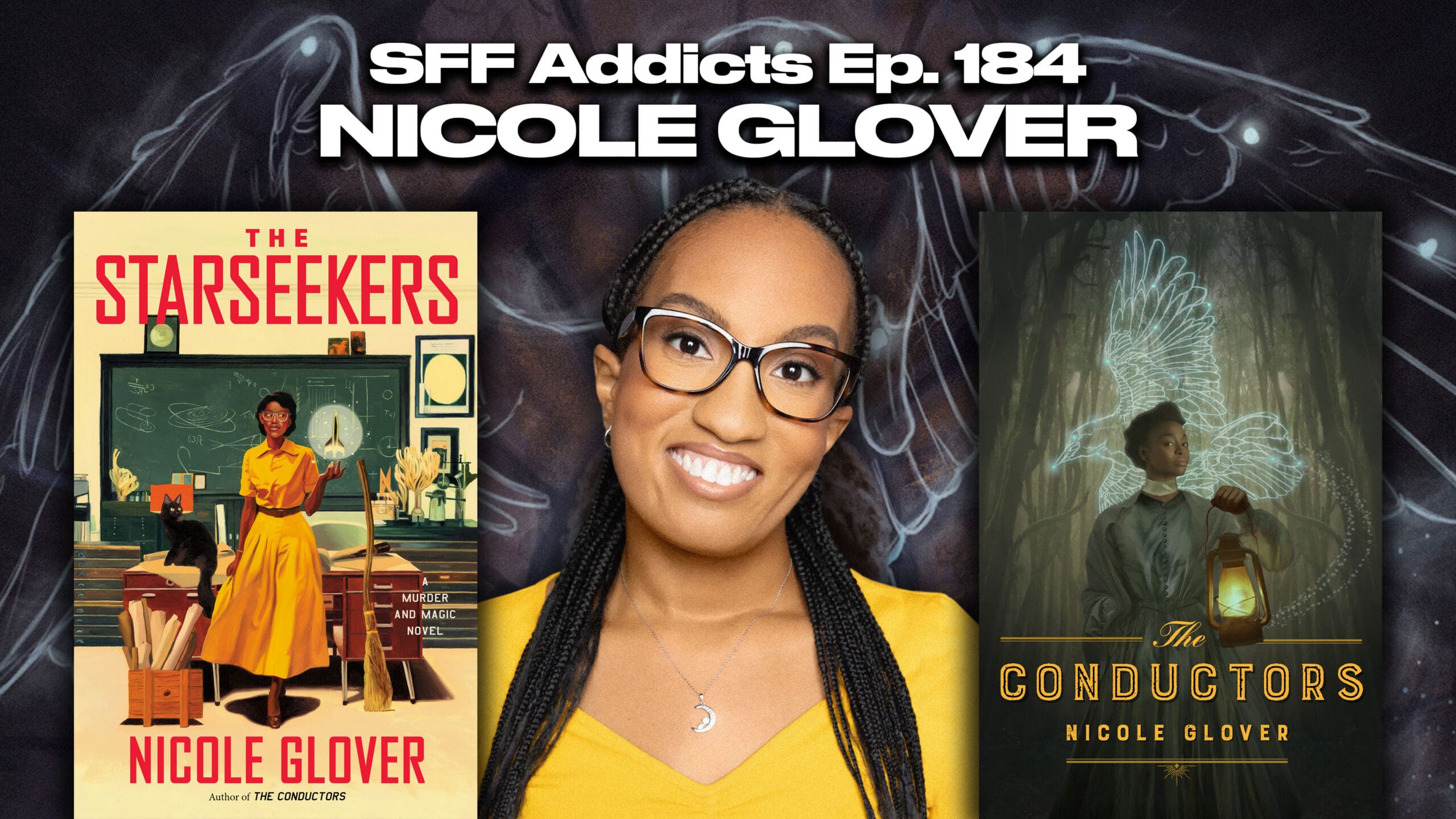 Join co-hosts Adrian M. Gibson & M.J. Kuhn as they chat with author Nicole Glover about her new novel The Starseekers, the Murder & Magic series, falling in love with SFF and writing, alternate history and blending genres, the Space Race and 1960s history, blending magic with math/science, writing a series of standalones, using the past to discuss modern concerns, the fun of murder mysteries, crafting compelling main characters and much more.